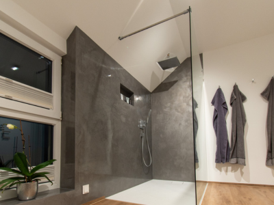 Mit modernen Baustoffen bauen wir heute fugenlose Duschen und individuelle fugenlose Bäder. Eine transparente Versiegelung ermöglicht uns dabei selbst im Nassbereich den Verzicht auf Fliesen. Und unabhängig davon, für welches Finish Sie sich entscheiden: Alle von uns verwendeten Materialien sind äußerst langlebig und ideal zu reinigen.