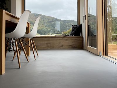 Fugenlose Böden schaffen ein ruhiges, modernes Gesamtbild – ganz ohne Unterbrechungen.
