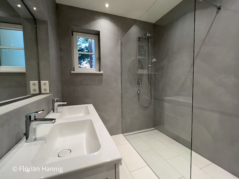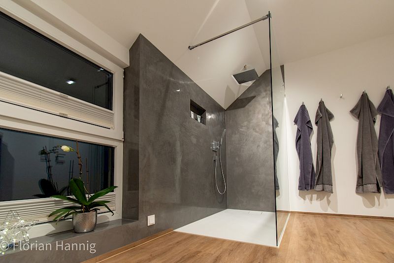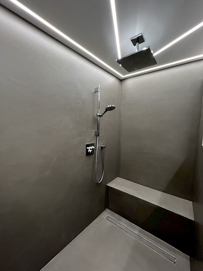 Mit modernen Baustoffen bauen wir heute fugenlose Duschen und individuelle fugenlose Bäder. Eine transparente Versiegelung ermöglicht uns dabei selbst im Nassbereich den Verzicht auf Fliesen. Und unabhängig davon, für welches Finish Sie sich entscheiden: Alle von uns verwendeten Materialien sind äußerst langlebig und ideal zu reinigen.