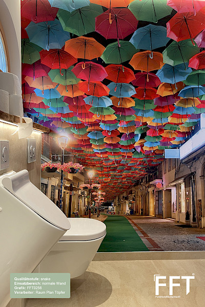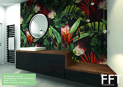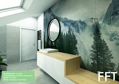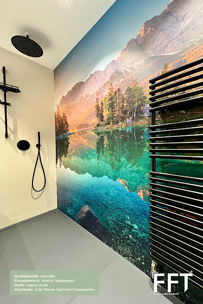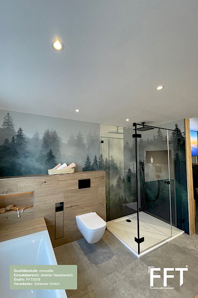 Ja, mit der passenden Versiegelung sind Wandtextilien auch im direkten Nassbereich dauerhaft nutzbar.