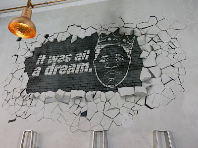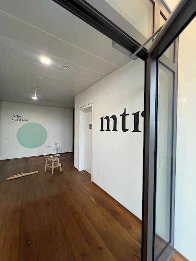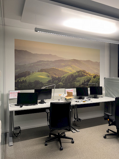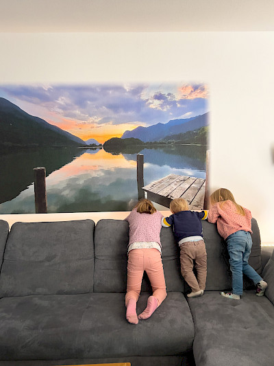 Aufgrund der Einschränkungen der Tintenstrahl-Technologie gibt es in Ecken Ränder zu den benachbarten Wänden, zum Boden und zur Decke. Diese betragen links 6 cm, rechts 10 cm, oben 40 cm und unten 25 cm.